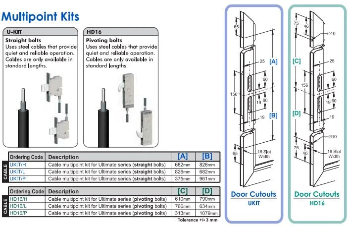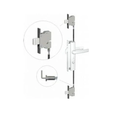 This cable-driven kit is used with Ultimate locksets to provide the extra security of three-point locking for hinged security doors.