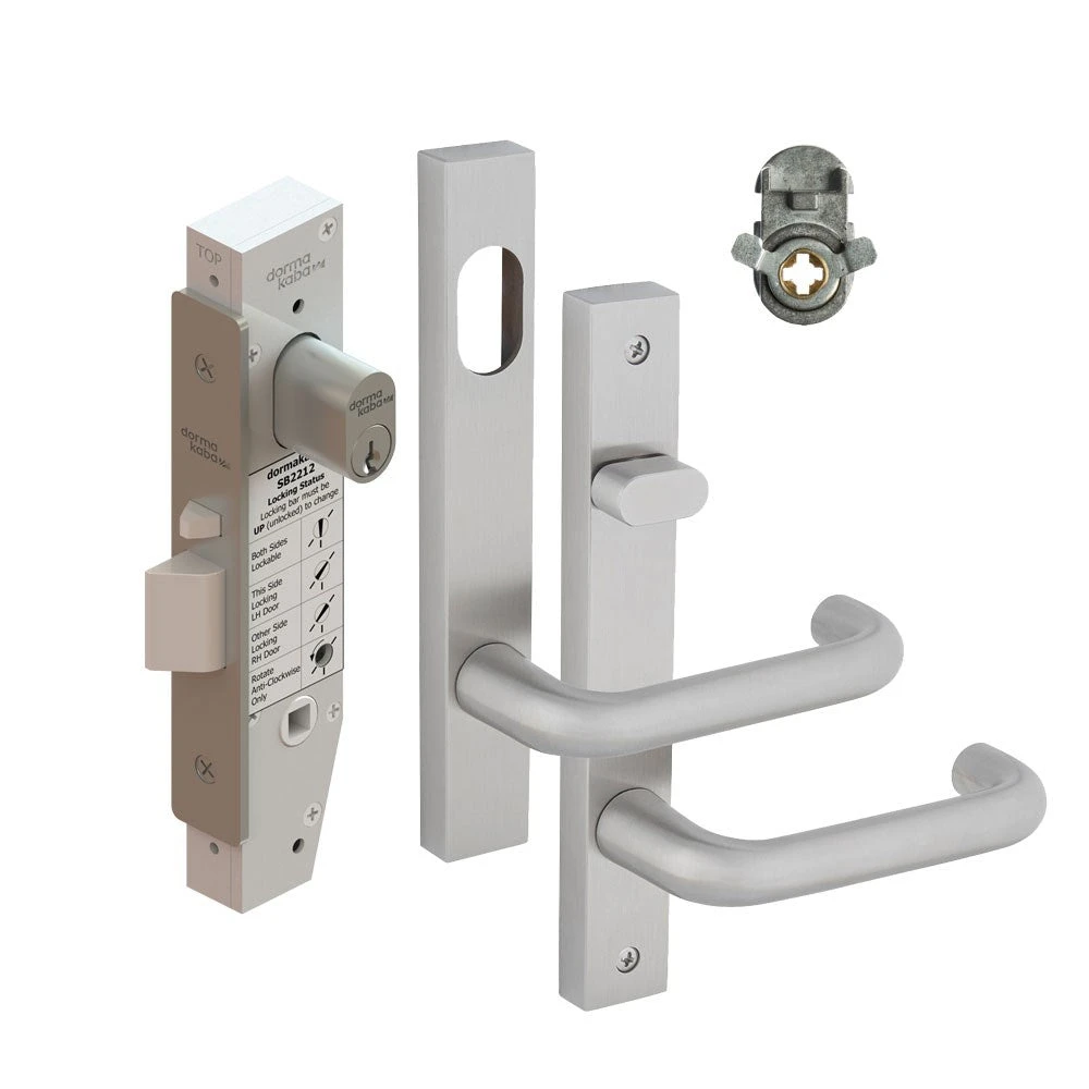 Dormakaba SB2212 short backset mortice lock entrance kit with 316 grade stainless steel furniture.
