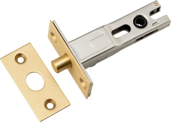 Privacy bolt featuring brass face plate and striker. Suits Iver privacy turns and long backplate privacy hardware.