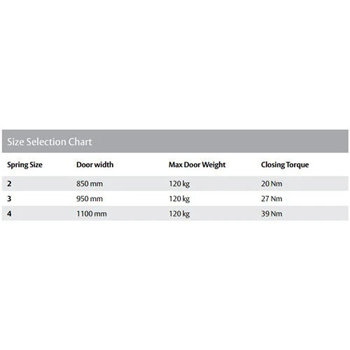 - Door Width – Up to 1150mm (refer to selection procedure)