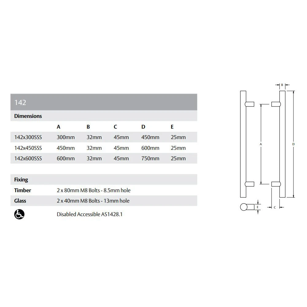 Constructed of 304 grade stainless steel, Lockwood Entrance Handles are suitable for use in external environments.