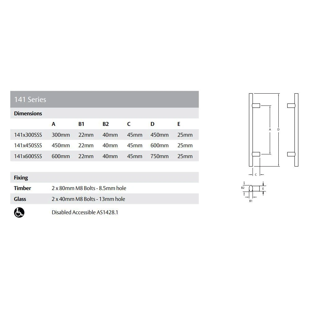 Constructed of 304 grade stainless steel, Lockwood Entrance Handles are suitable for use in external environments.