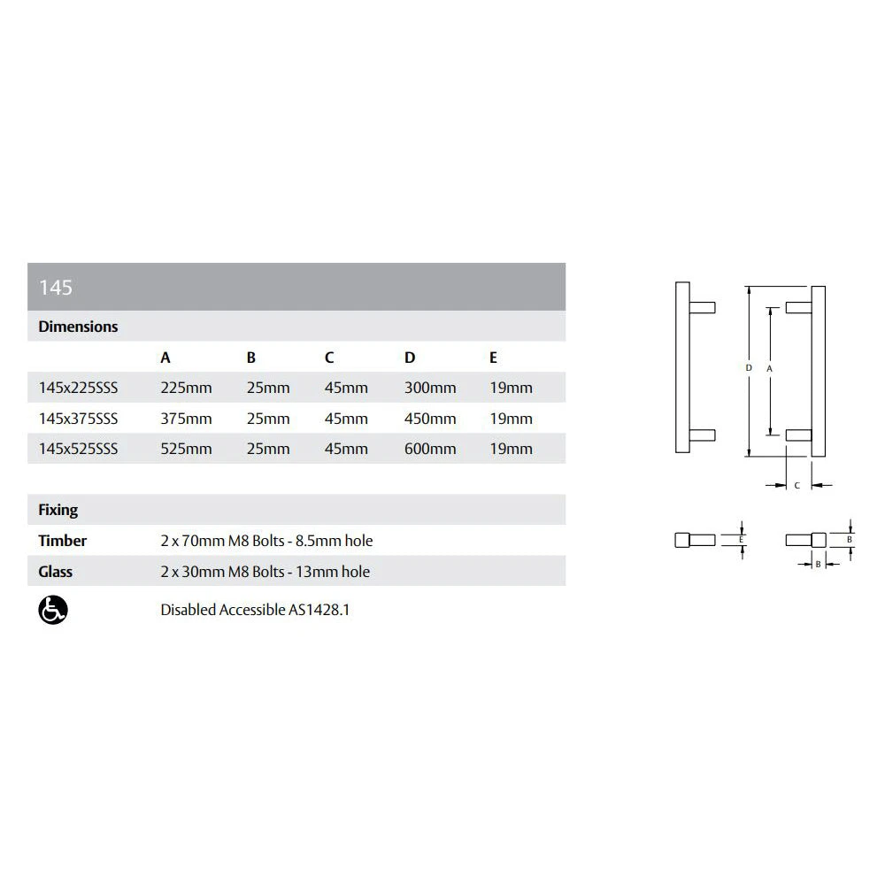 Constructed of 304 grade stainless steel, Lockwood Entrance Handles are suitable for use in external environments.