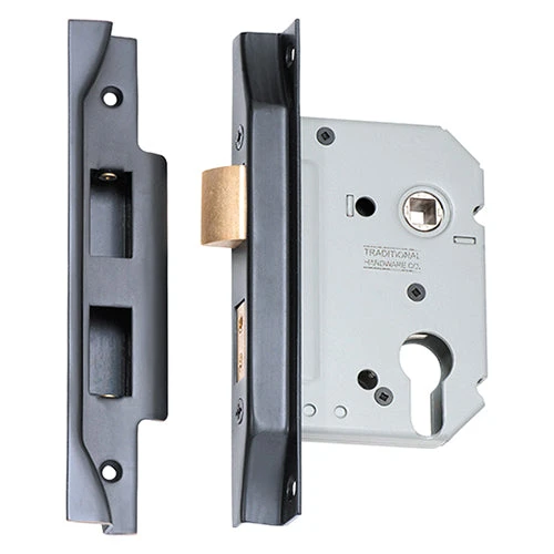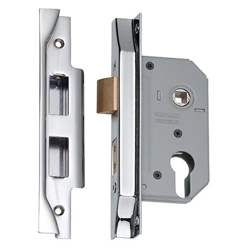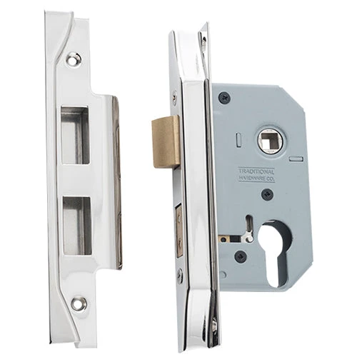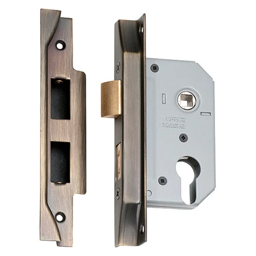 Rebated high security euro mortice lock for external applications.