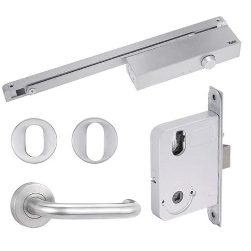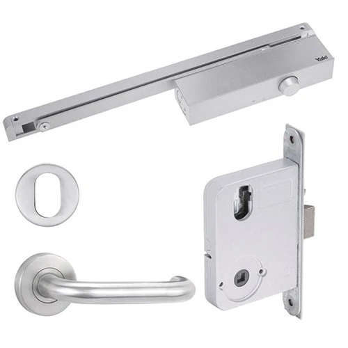 The Yale Simplicity Series is total door solution specifically targeted at the multi-residential development new construction market. Supplied in a consolidated door kit the Yale Simplicity Series incorporates a range of stainless steel rose door furniture, a mortice lock and door closer specifically intended for use on apartment doors.